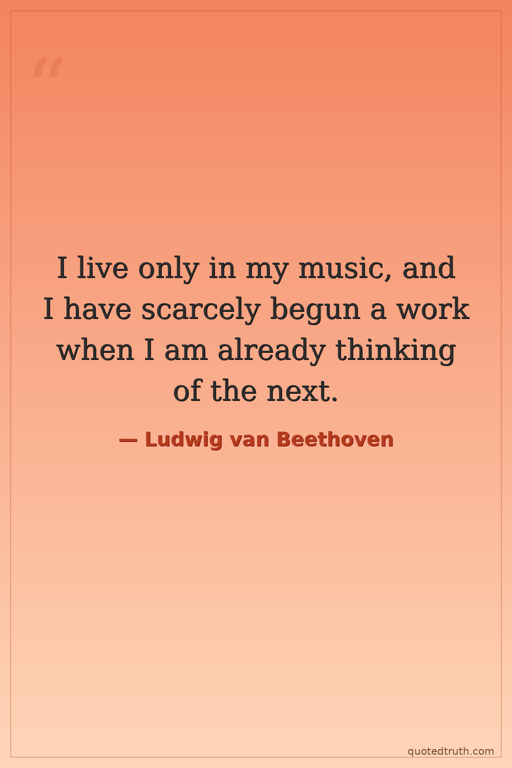 I live only in my music, and I have scarcely begun a work when I am already thinking of the next.