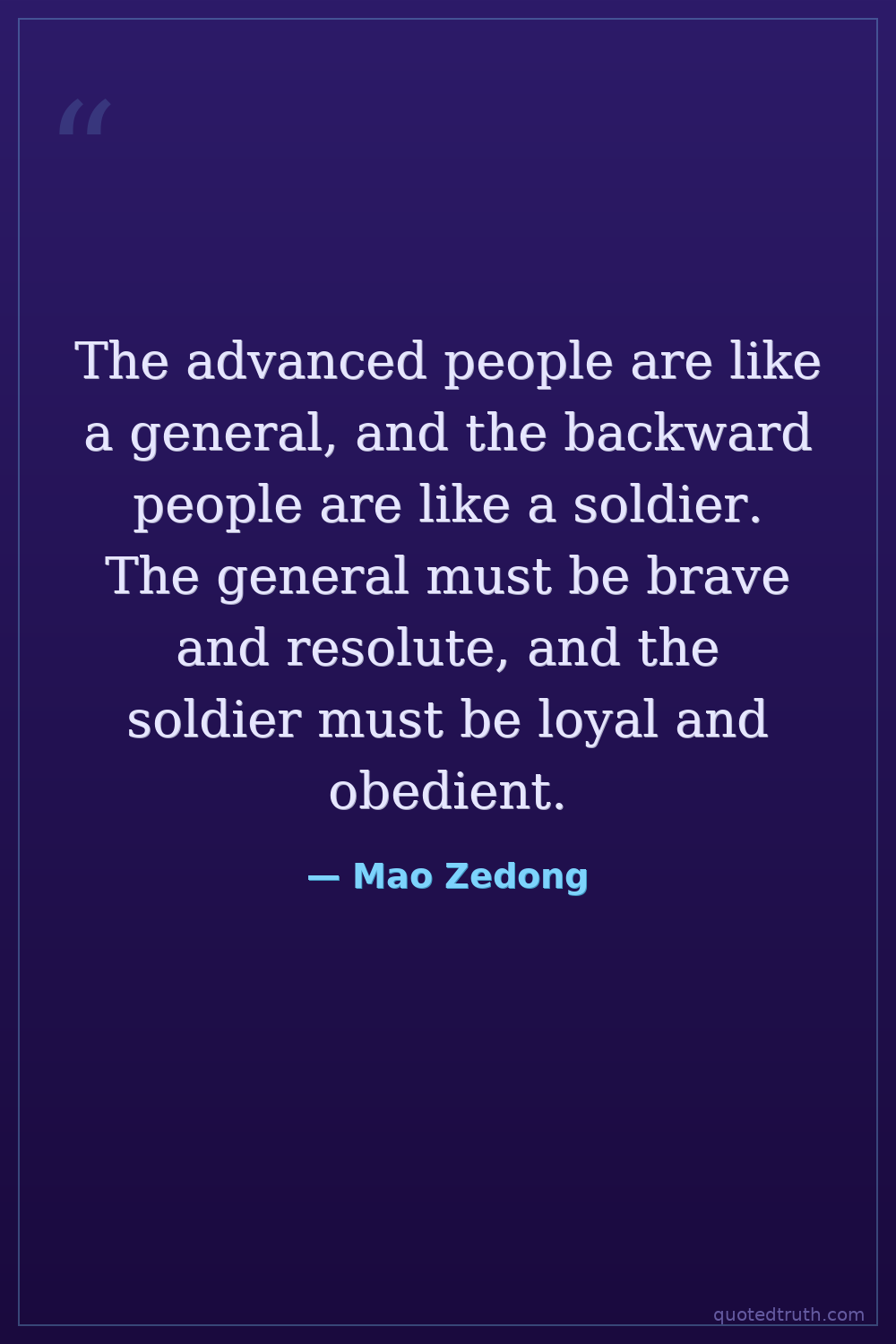 The advanced people are like a general, and the backward people are like a soldier. The general must be brave and resolute, and the soldier must be loyal and obedient.