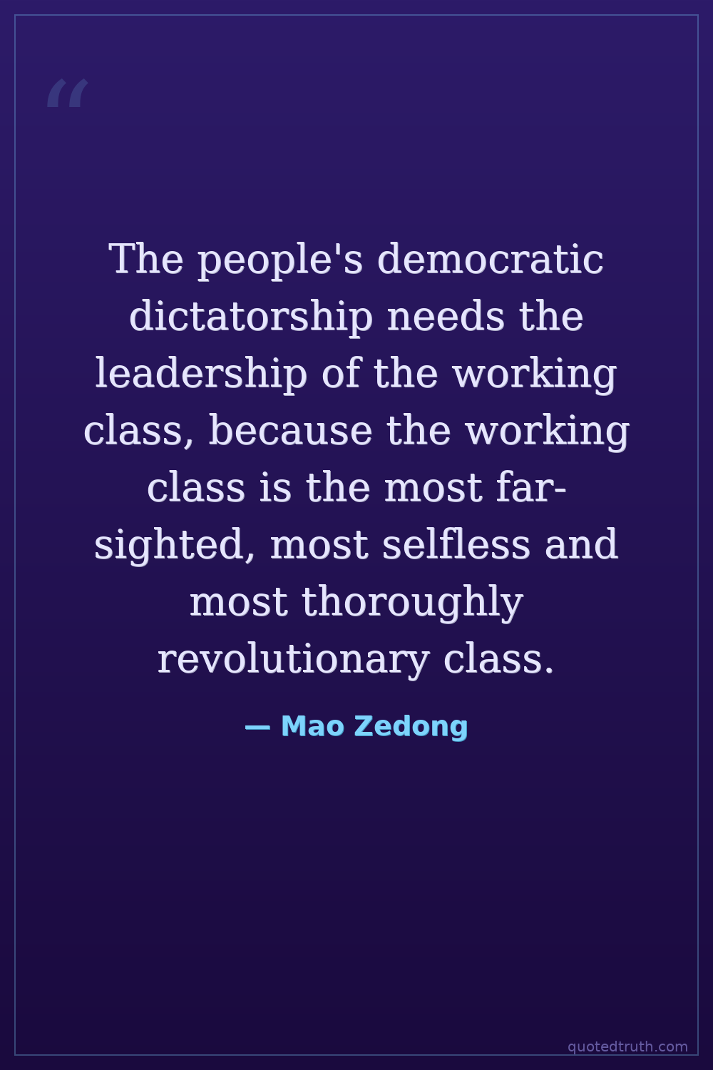 The people's democratic dictatorship needs the leadership of the working class, because the working class is the most far-sighted, most selfless and most thoroughly revolutionary class.