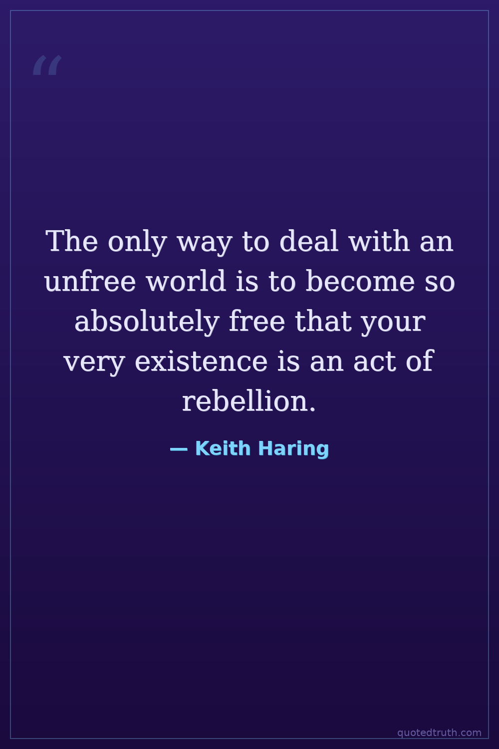 The only way to deal with an unfree world is to become so absolutely free that your very existence is an act of rebellion.