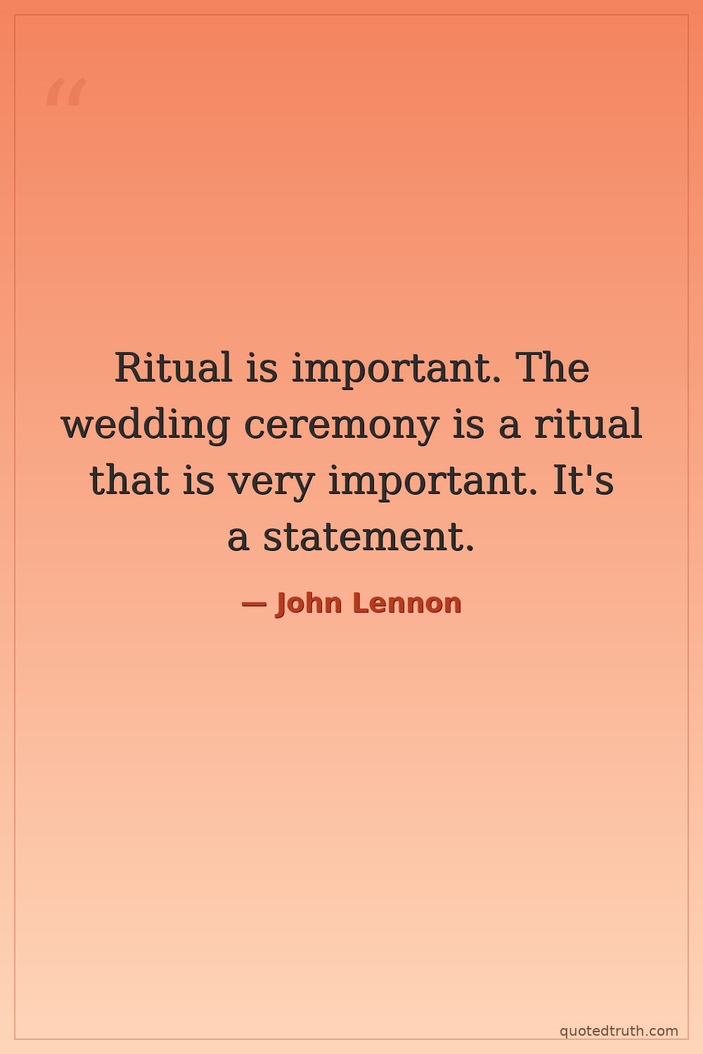 Ritual is important. The wedding ceremony is a ritual that is very important. It's a statement.