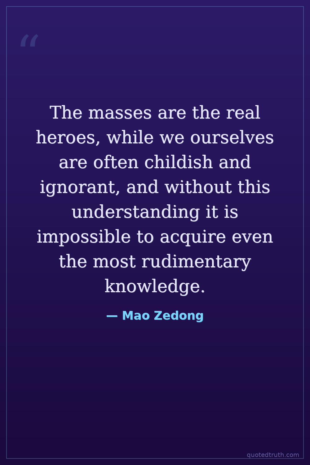 The masses are the real heroes, while we ourselves are often childish and ignorant, and without this understanding it is impossible to acquire even the most rudimentary knowledge.