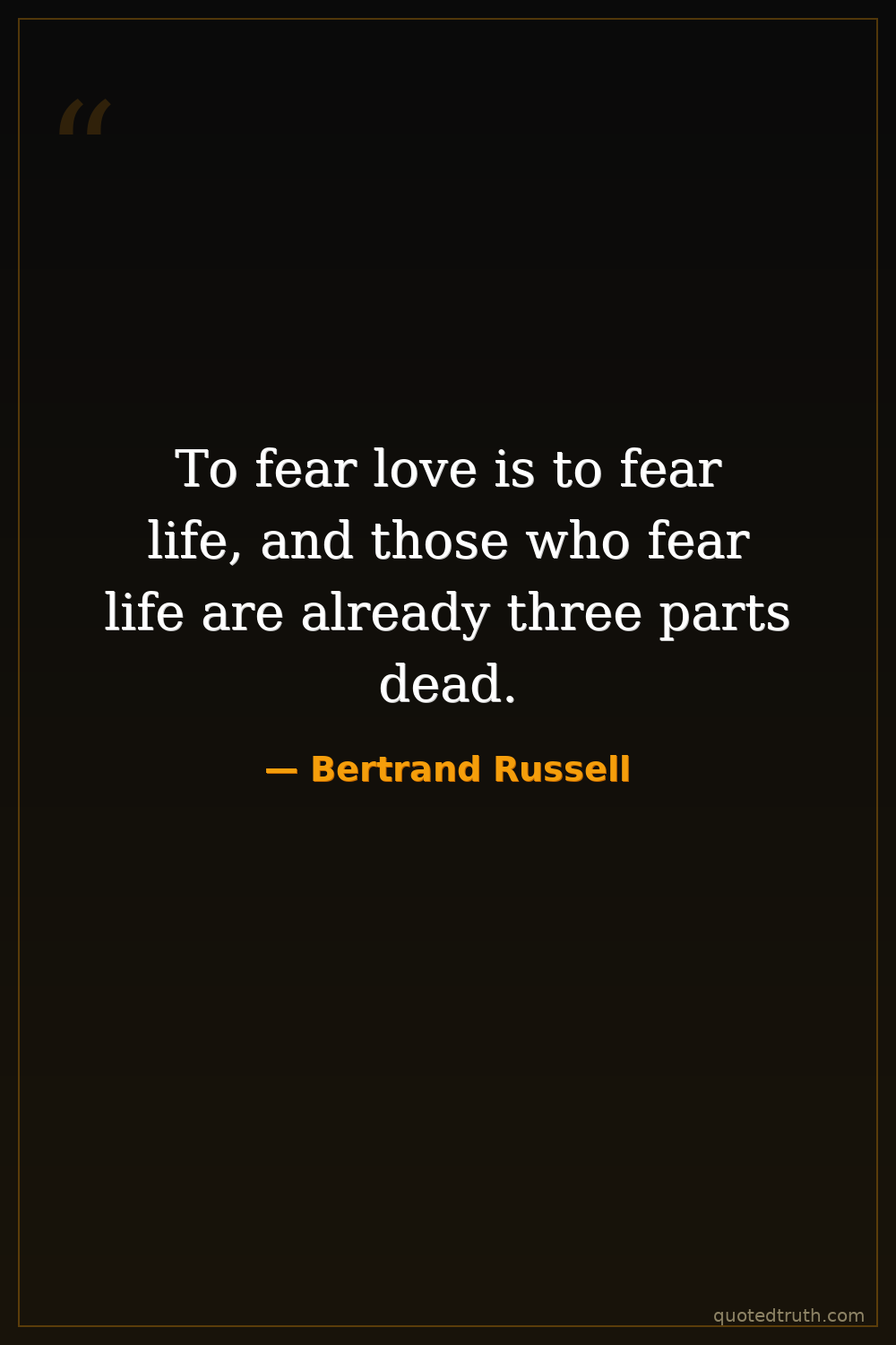 To fear love is to fear life, and those who fear life are already three parts dead.