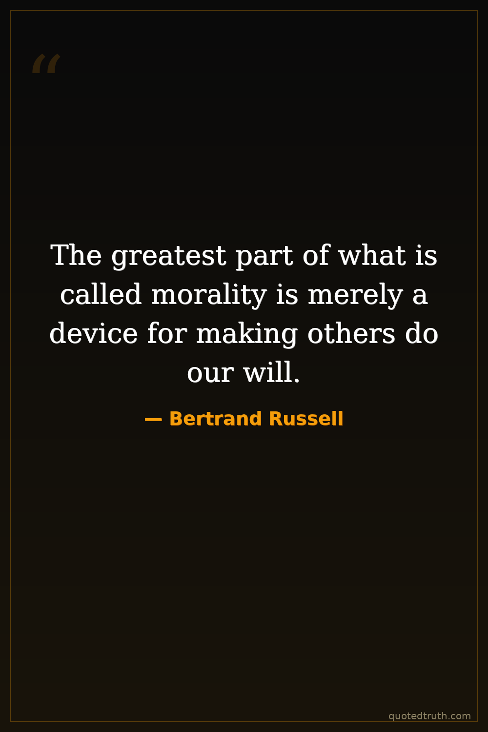 The greatest part of what is called morality is merely a device for making others do our will.