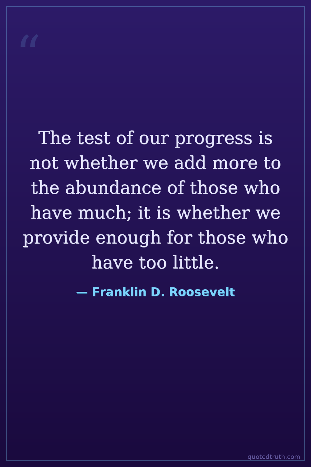 The test of our progress is not whether we add more to the abundance of those who have much; it is whether we provide enough for those who have too little.