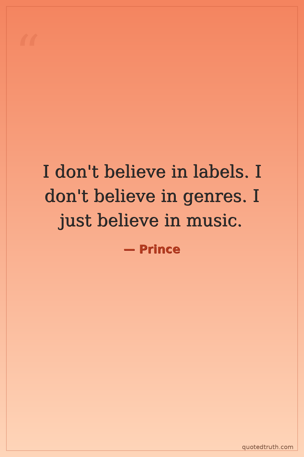 I don't believe in labels. I don't believe in genres. I just believe in music.