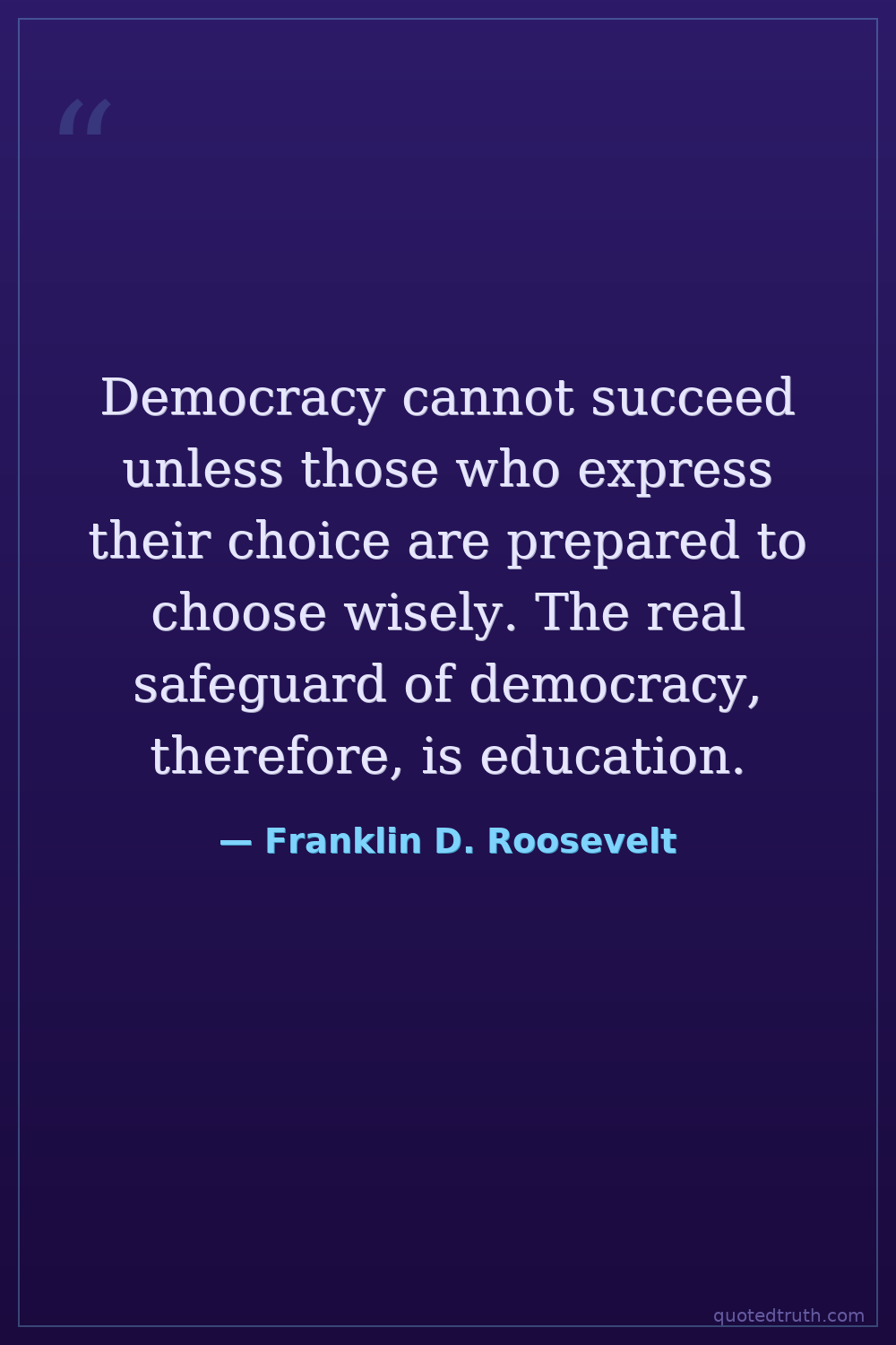 Democracy cannot succeed unless those who express their choice are prepared to choose wisely. The real safeguard of democracy, therefore, is education.