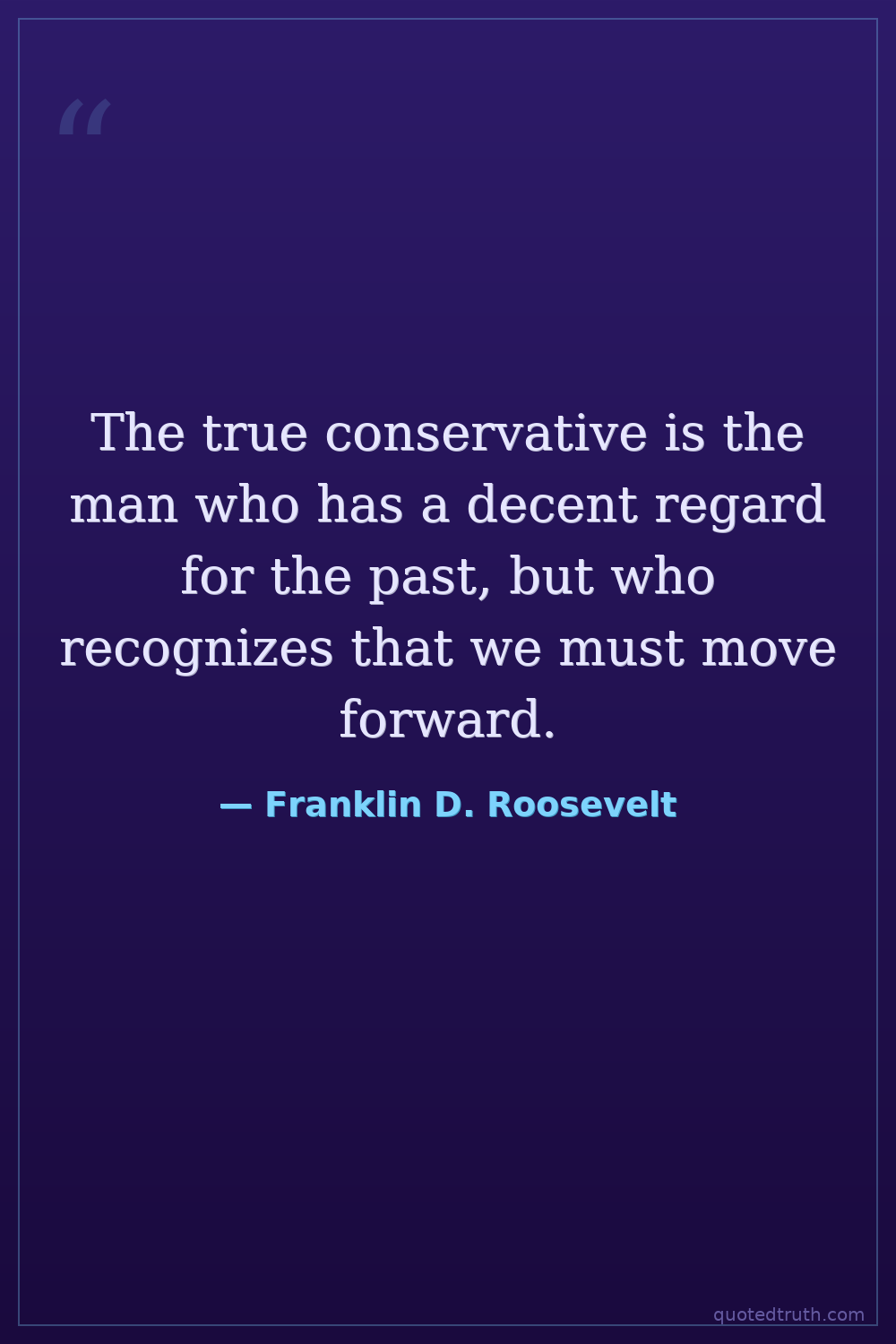The true conservative is the man who has a decent regard for the past, but who recognizes that we must move forward.