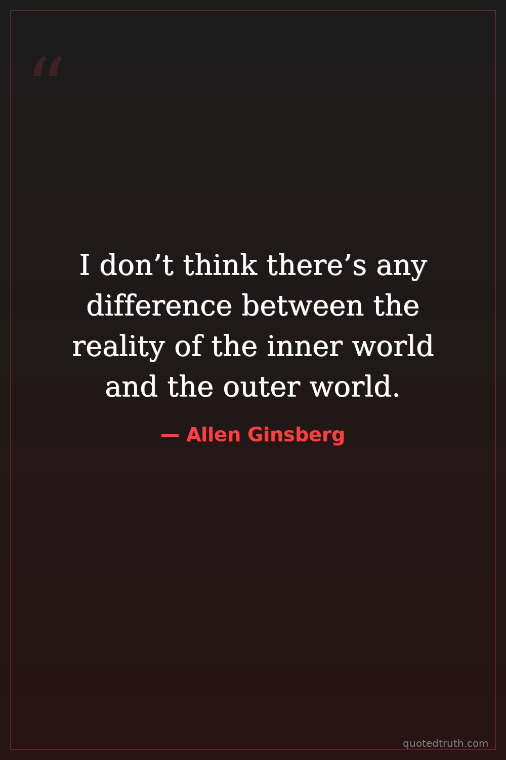 I don’t think there’s any difference between the reality of the inner world and the outer world.