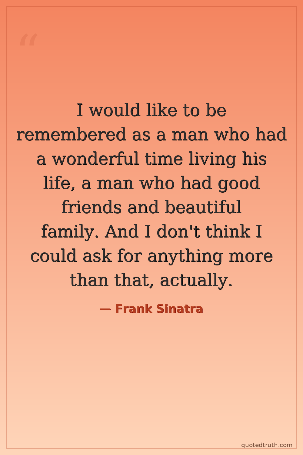 I would like to be remembered as a man who had a wonderful time living his life, a man who had good friends and beautiful family. And I don't think I could ask for anything more than that, actually.