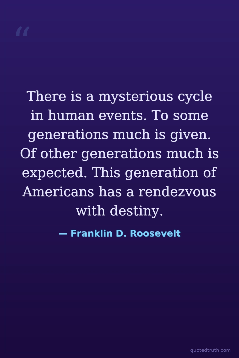 There is a mysterious cycle in human events. To some generations much is given. Of other generations much is expected. This generation of Americans has a rendezvous with destiny.