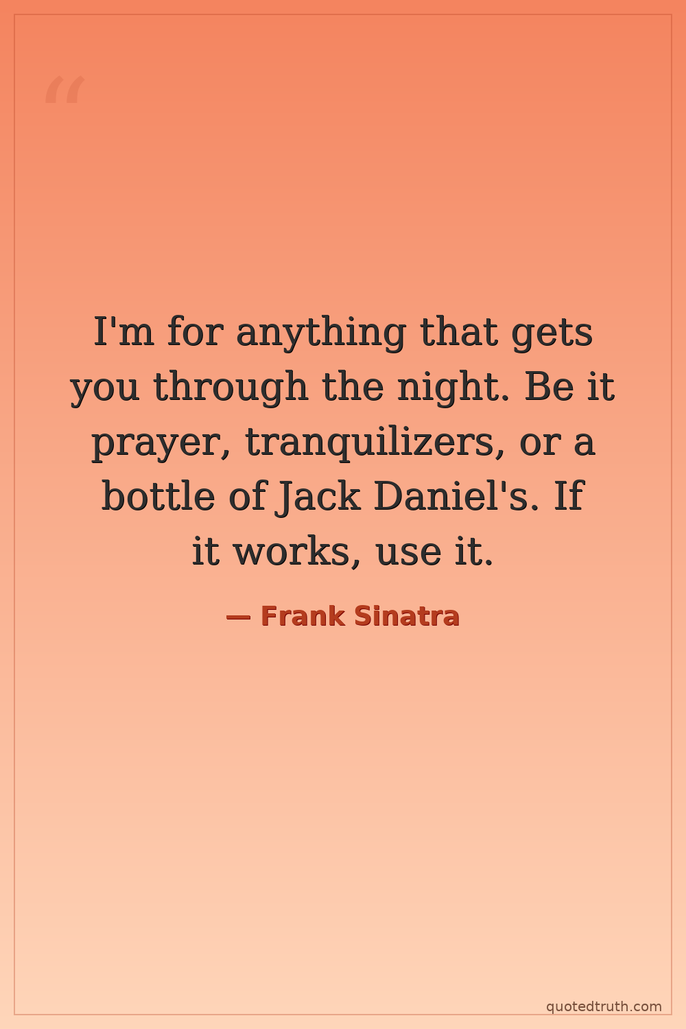 I'm for anything that gets you through the night. Be it prayer, tranquilizers, or a bottle of Jack Daniel's. If it works, use it.
