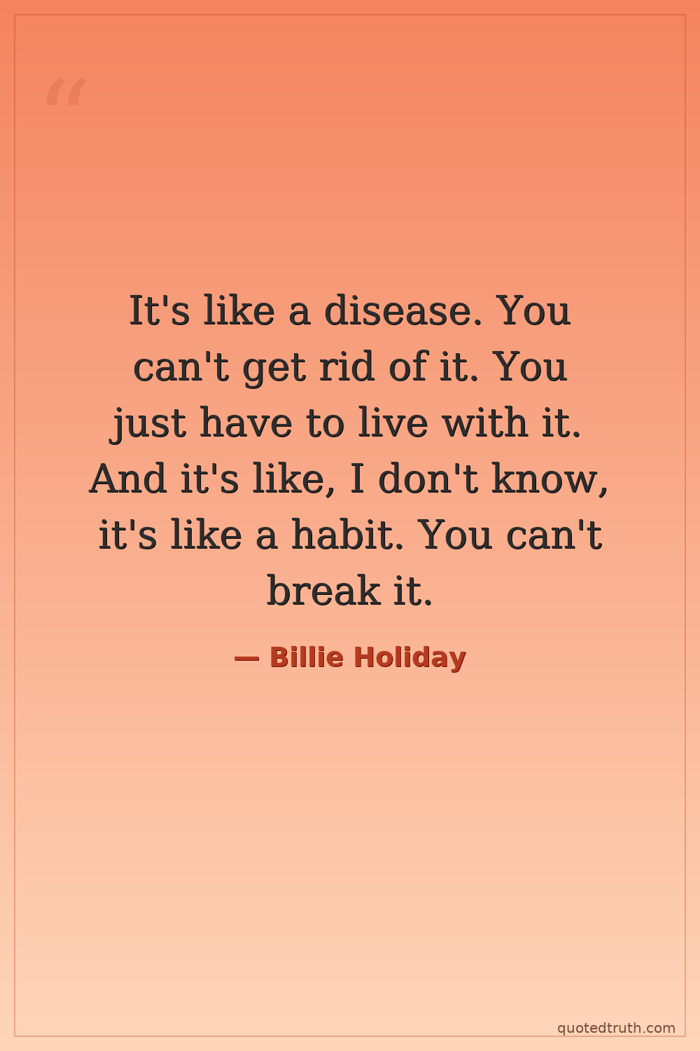 It's like a disease. You can't get rid of it. You just have to live with it. And it's like, I don't know, it's like a habit. You can't break it.