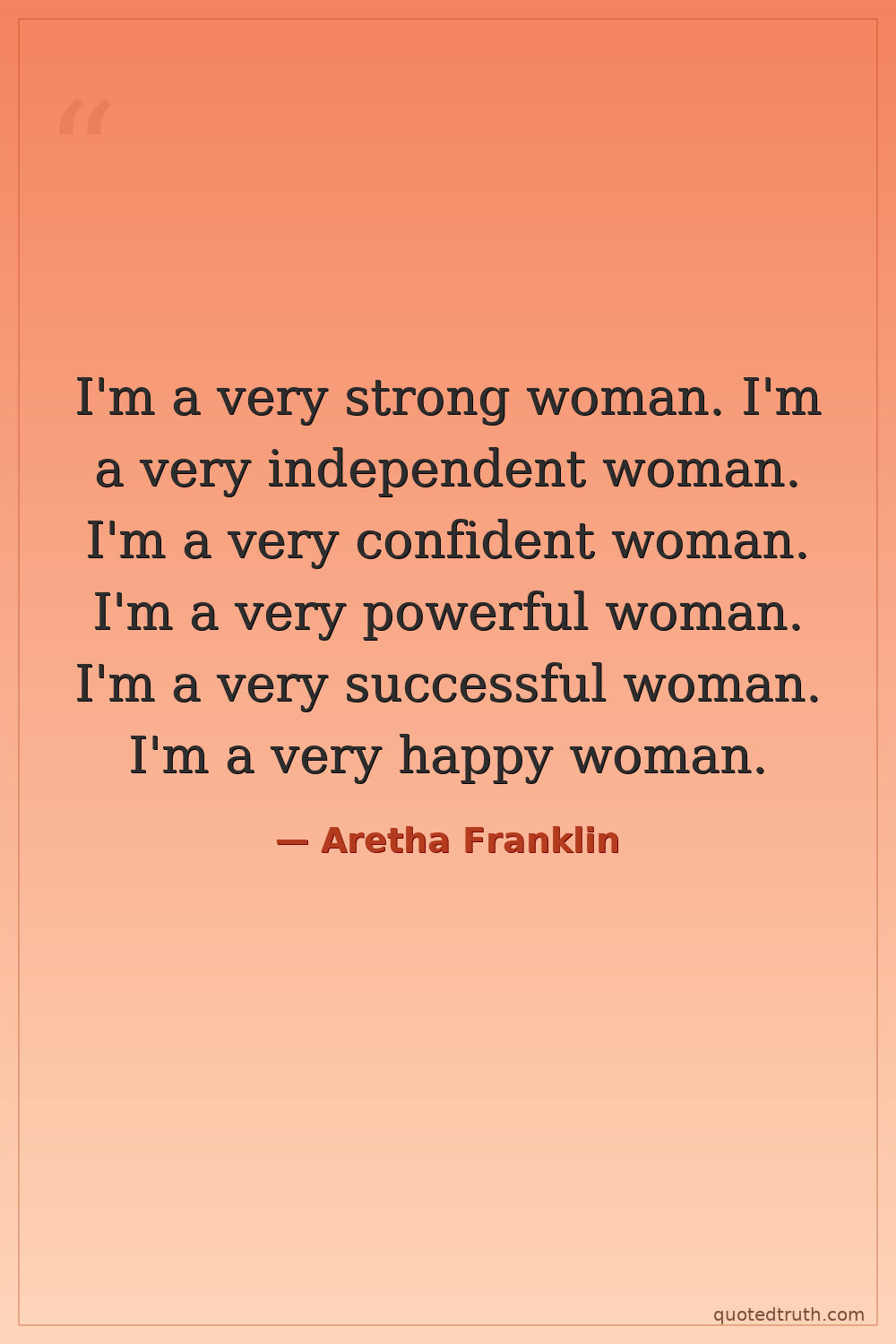 I'm a very strong woman. I'm a very independent woman. I'm a very confident woman. I'm a very powerful woman. I'm a very successful woman. I'm a very happy woman.