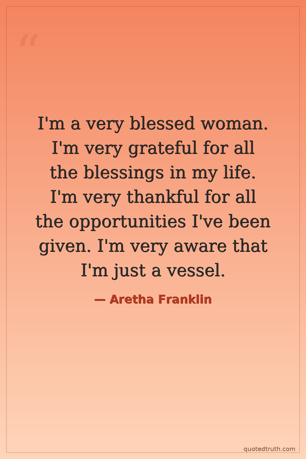 I'm a very blessed woman. I'm very grateful for all the blessings in my life. I'm very thankful for all the opportunities I've been given. I'm very aware that I'm just a vessel.