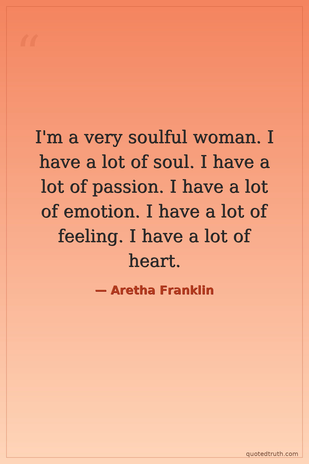 I'm a very soulful woman. I have a lot of soul. I have a lot of passion. I have a lot of emotion. I have a lot of feeling. I have a lot of heart.