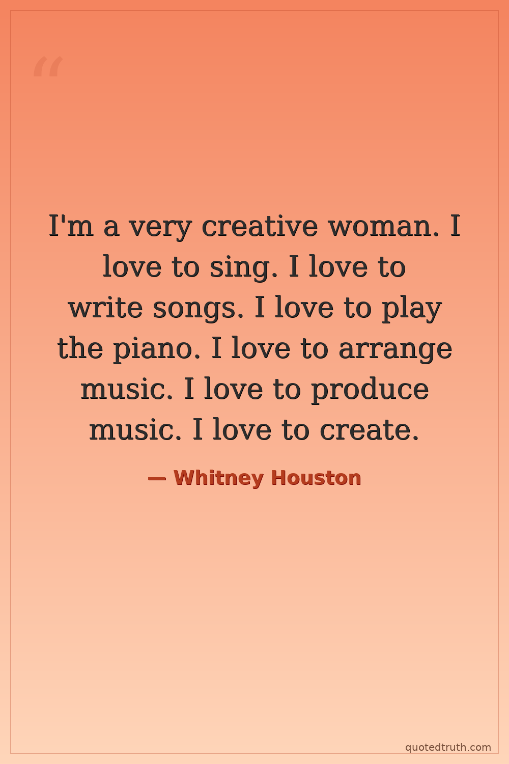 I'm a very creative woman. I love to sing. I love to write songs. I love to play the piano. I love to arrange music. I love to produce music. I love to create.