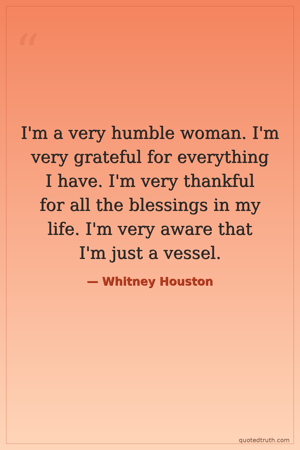 I'm a very humble woman. I'm very grateful for everything I have. I'm very thankful for all the blessings in my life. I'm very aware that I'm just a vessel.