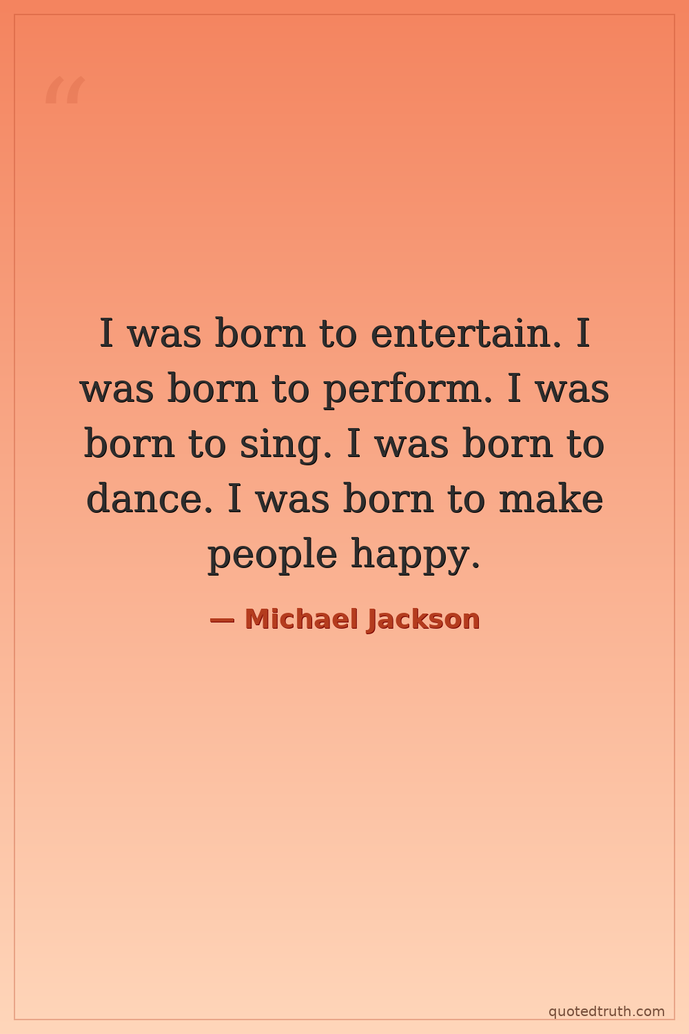 I was born to entertain. I was born to perform. I was born to sing. I was born to dance. I was born to make people happy.