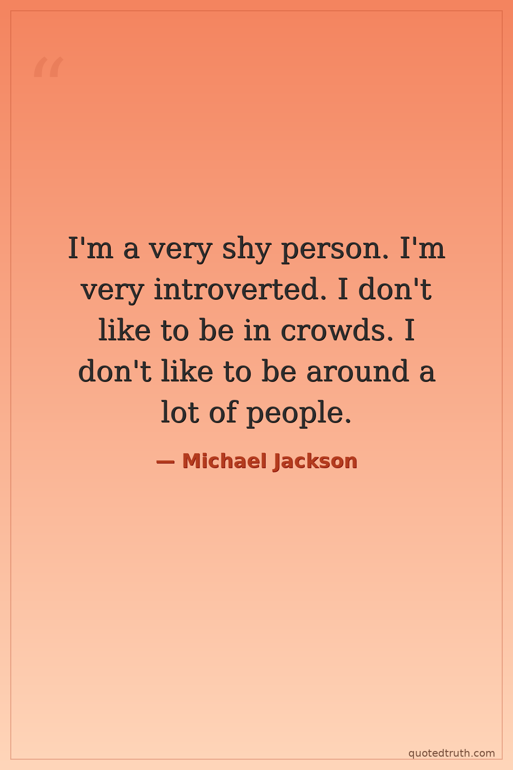I'm a very shy person. I'm very introverted. I don't like to be in crowds. I don't like to be around a lot of people.