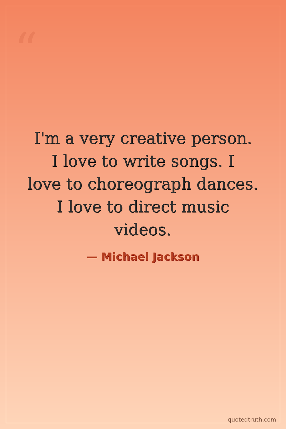 I'm a very creative person. I love to write songs. I love to choreograph dances. I love to direct music videos.
