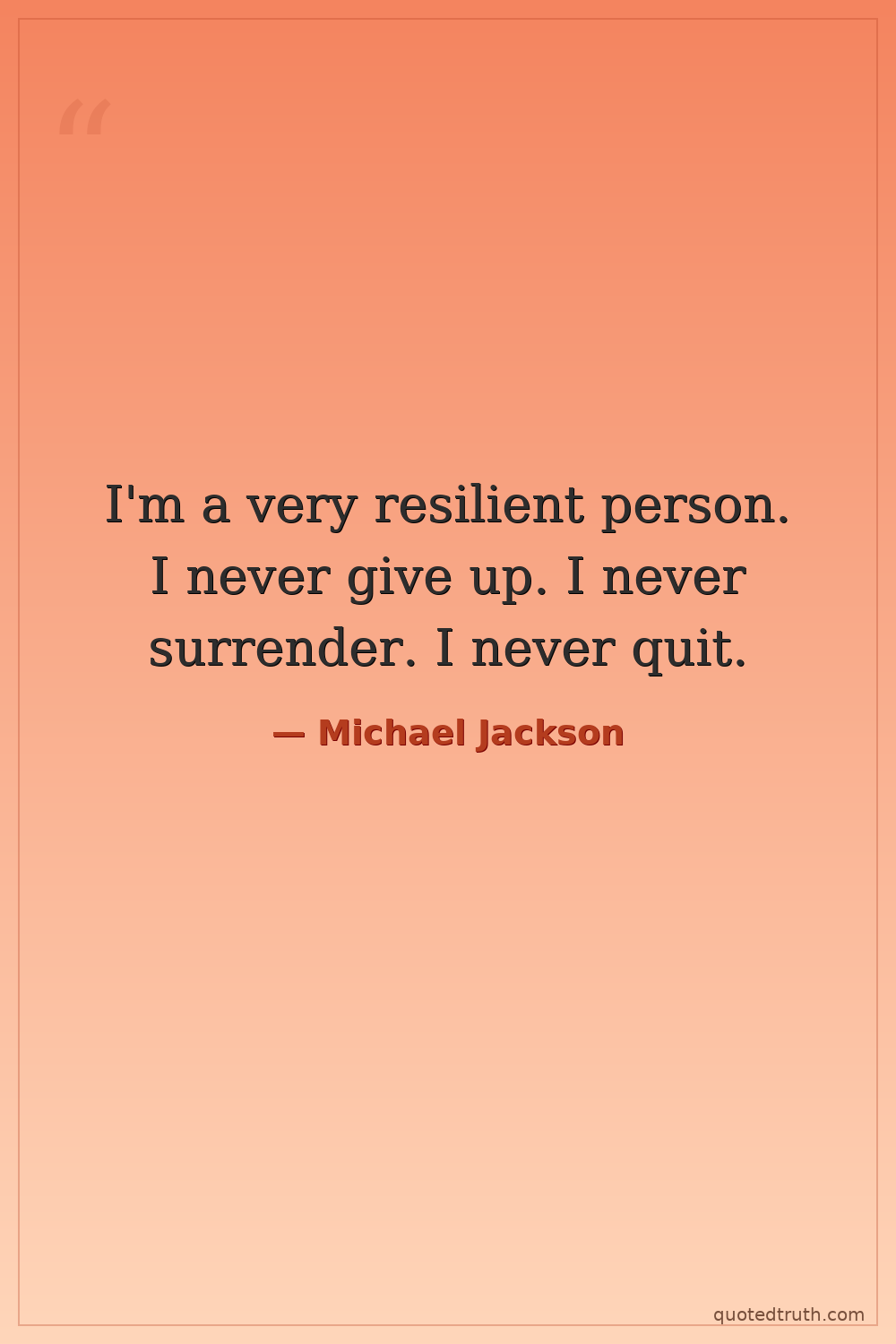 I'm a very resilient person. I never give up. I never surrender. I never quit.