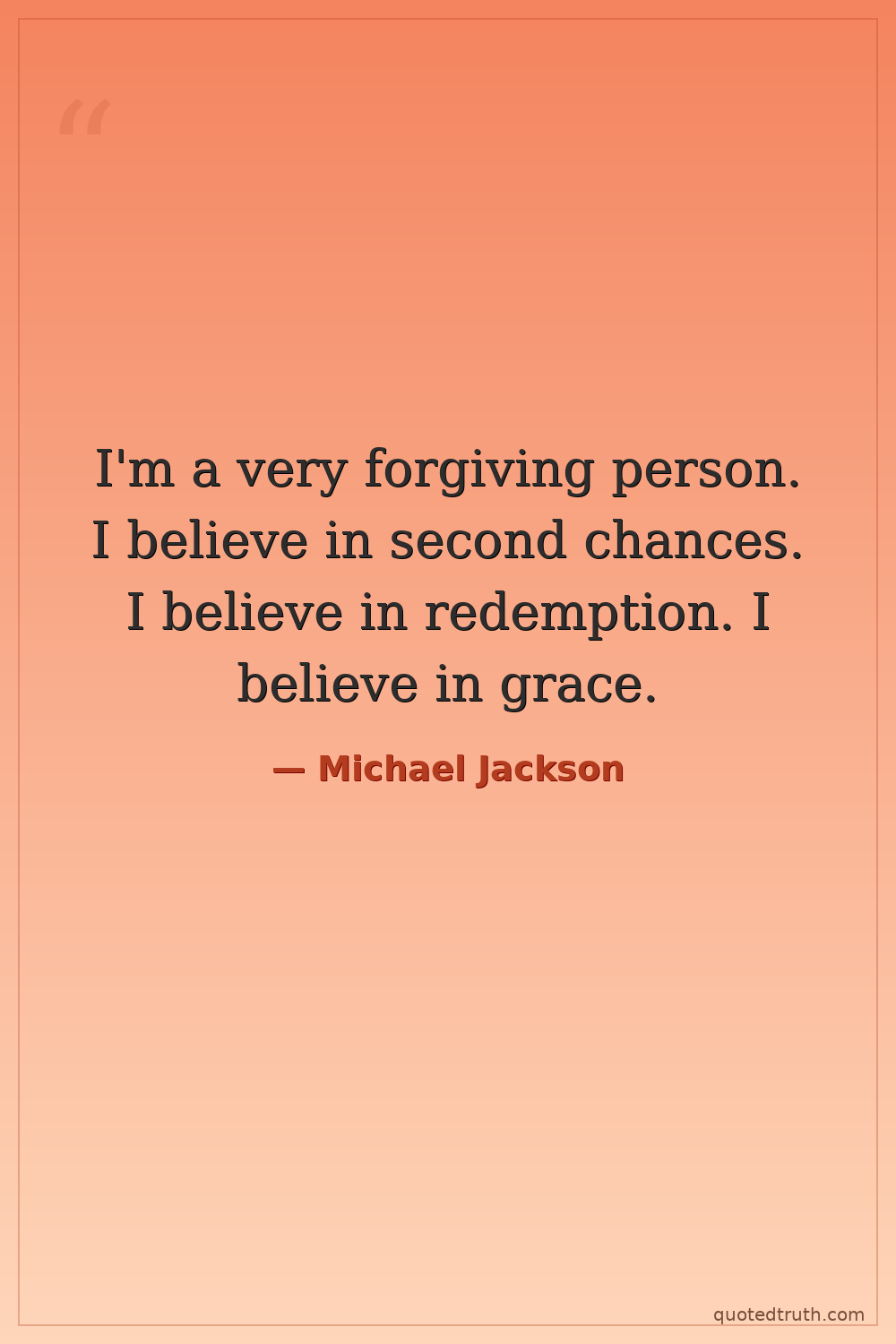 I'm a very forgiving person. I believe in second chances. I believe in redemption. I believe in grace.