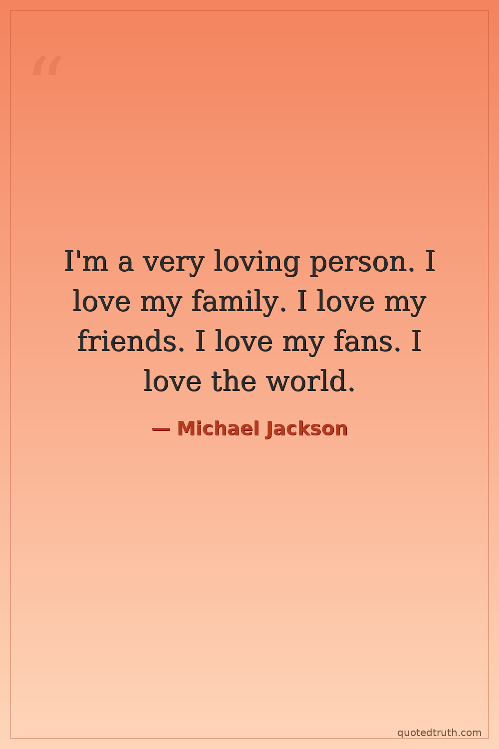 I'm a very loving person. I love my family. I love my friends. I love my fans. I love the world.