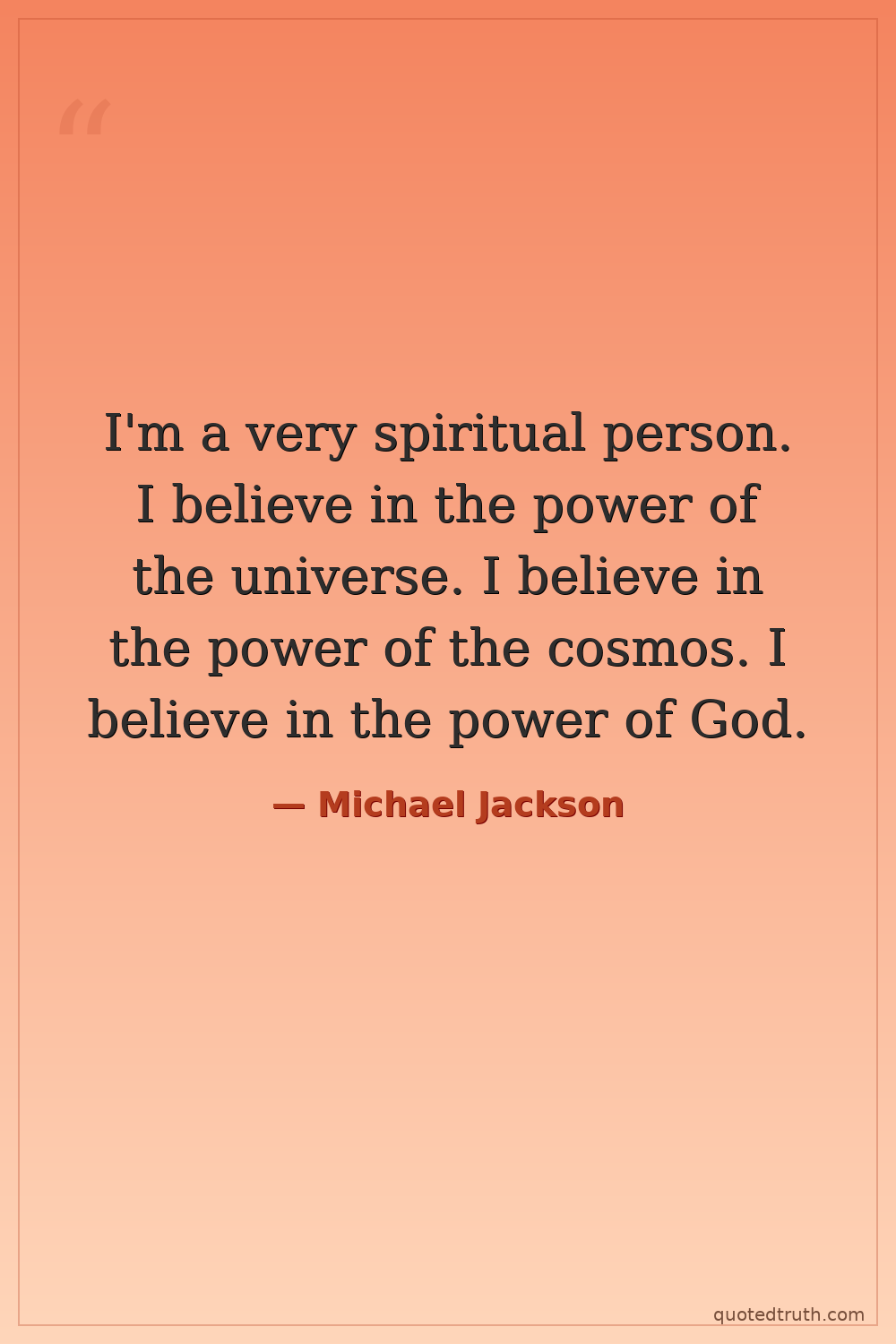 I'm a very spiritual person. I believe in the power of the universe. I believe in the power of the cosmos. I believe in the power of God.