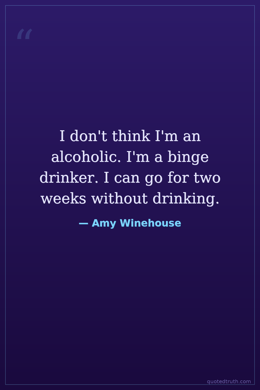 I don't think I'm an alcoholic. I'm a binge drinker. I can go for two weeks without drinking.