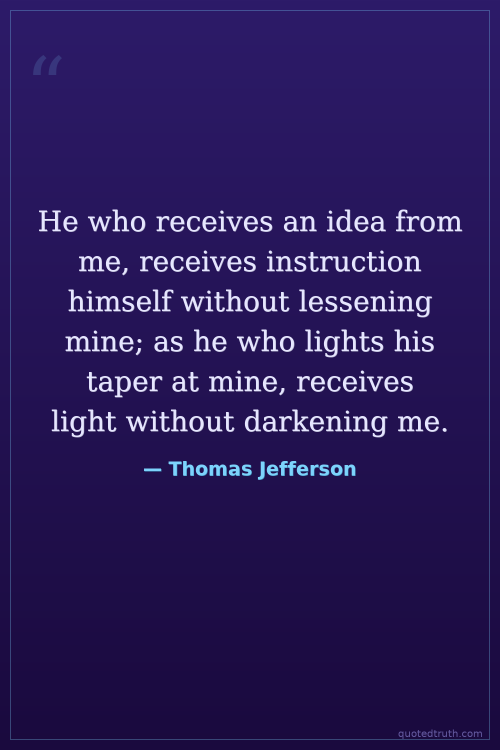 He who receives an idea from me, receives instruction himself without lessening mine; as he who lights his taper at mine, receives light without darkening me.
