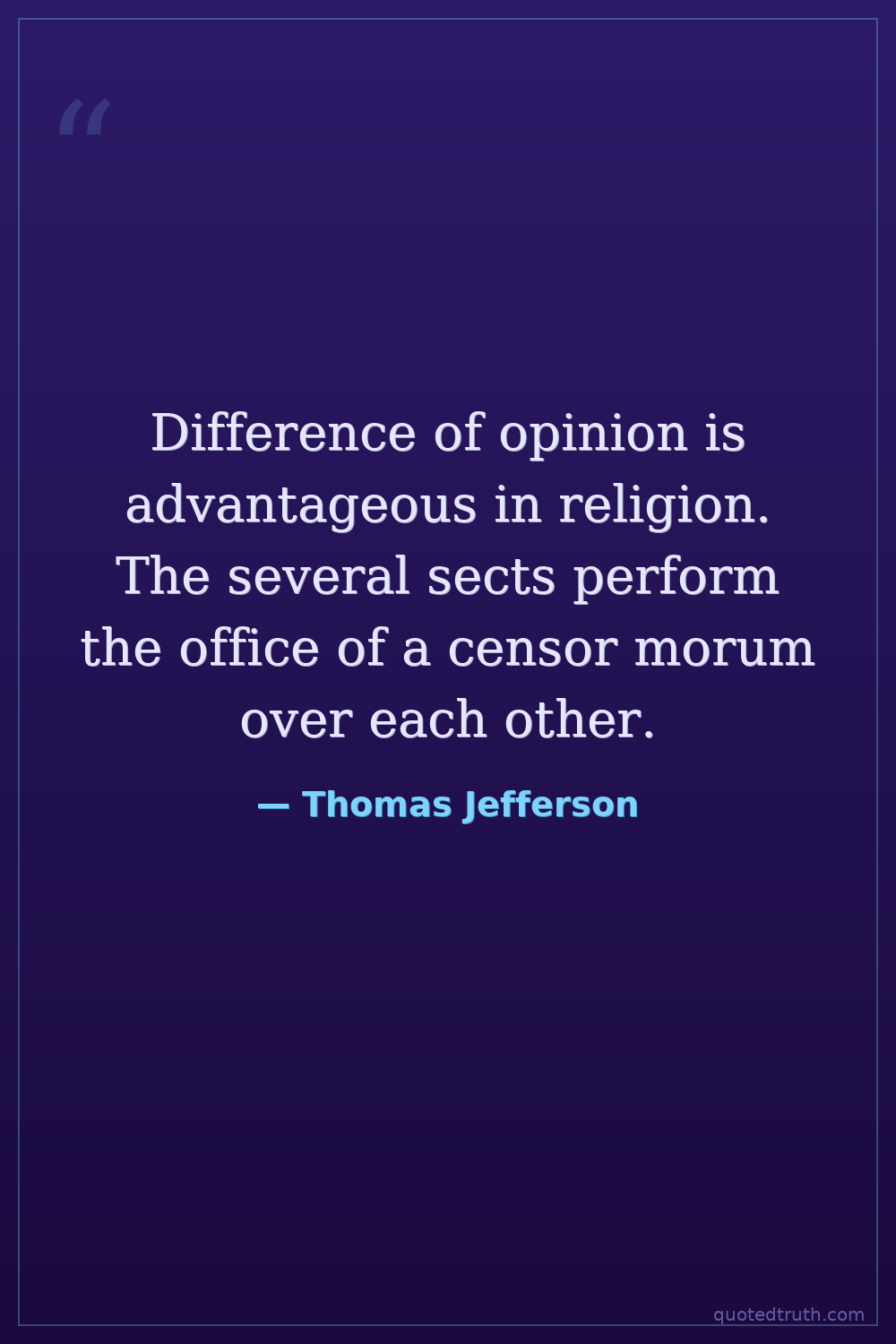 Difference of opinion is advantageous in religion. The several sects perform the office of a censor morum over each other.