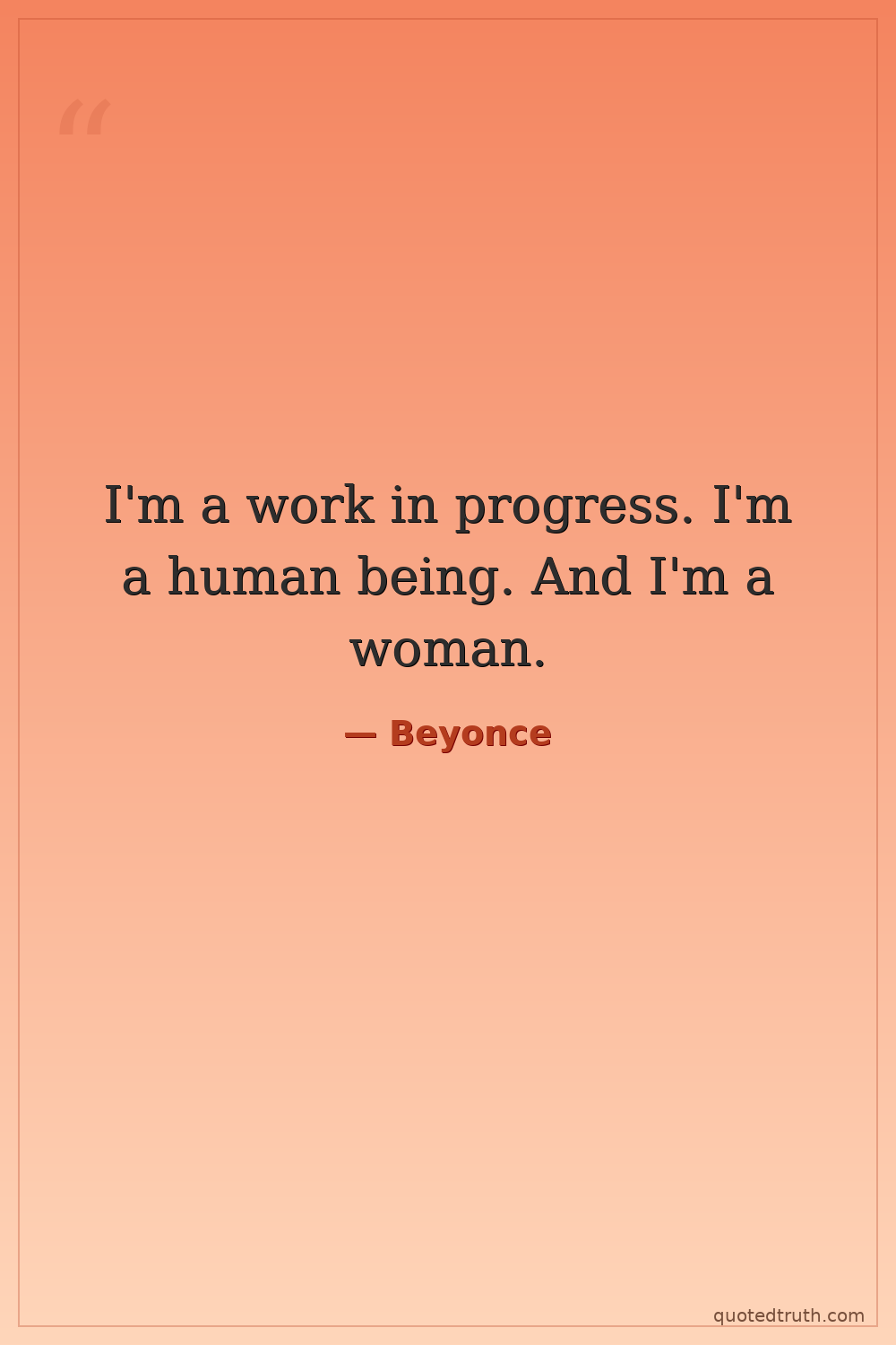 I'm a work in progress. I'm a human being. And I'm a woman.