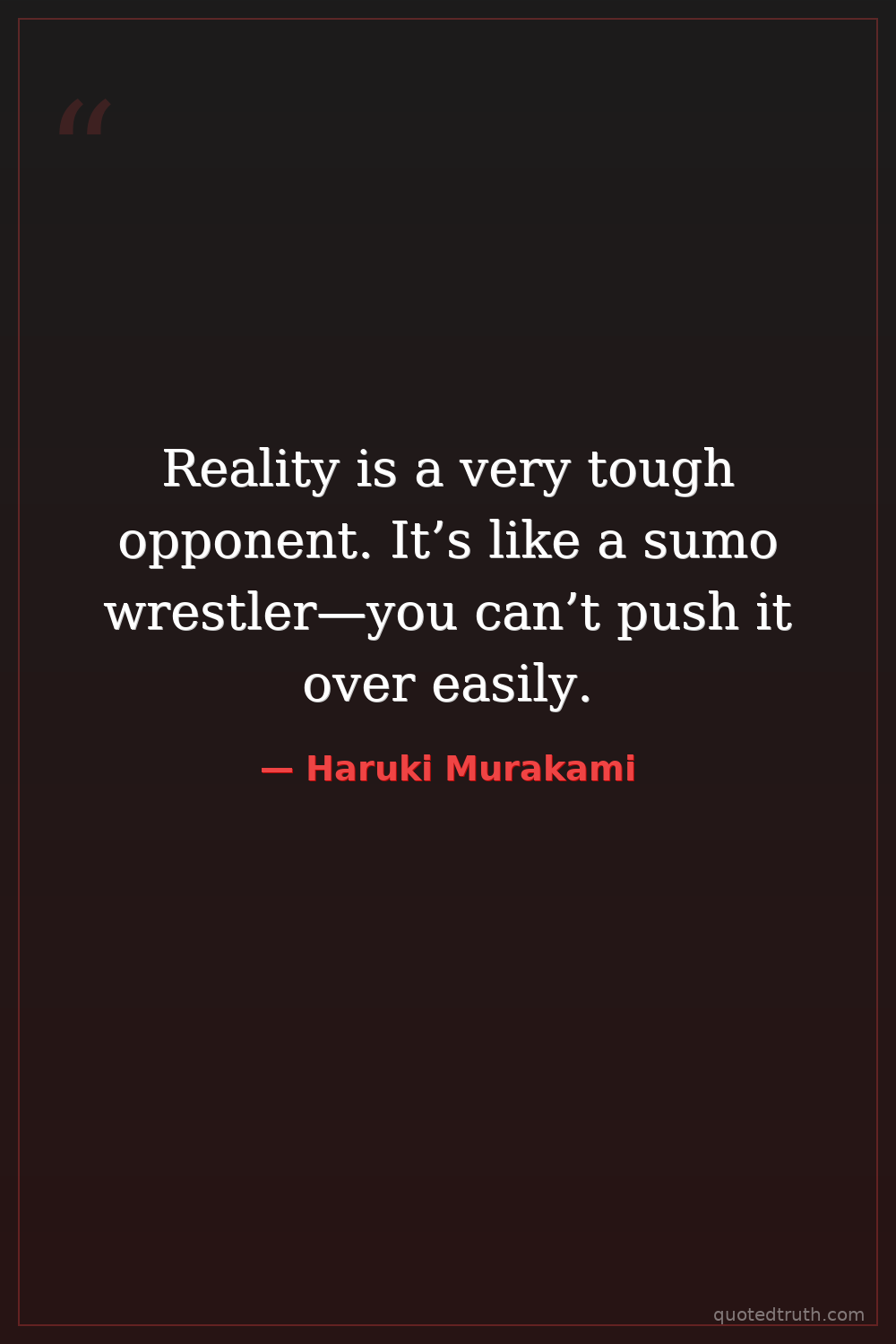 Reality is a very tough opponent. It’s like a sumo wrestler—you can’t push it over easily.