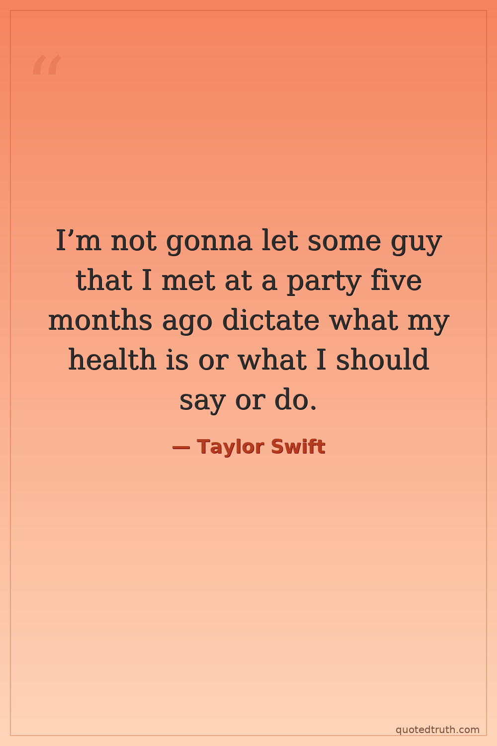 I’m not gonna let some guy that I met at a party five months ago dictate what my health is or what I should say or do.