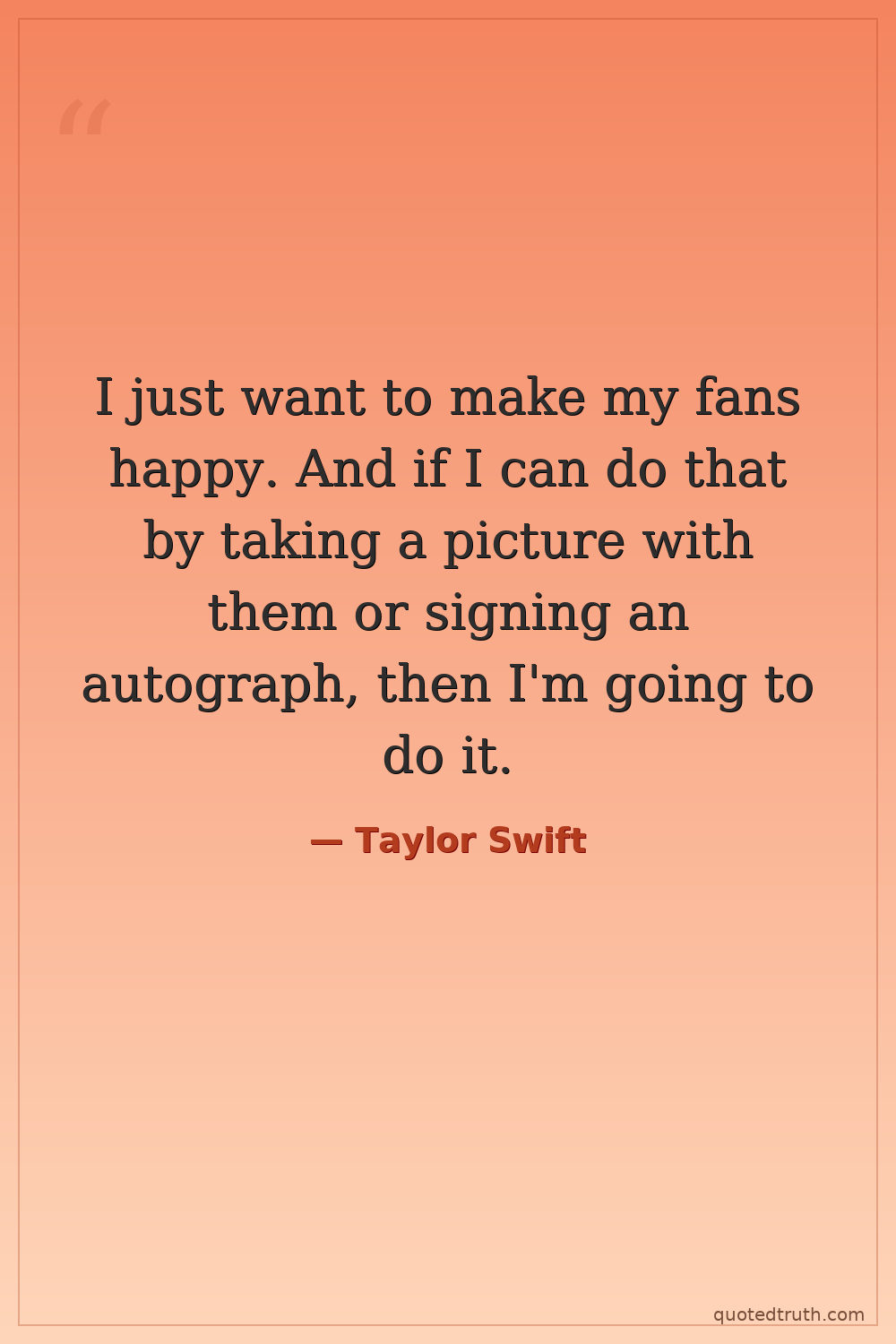 I just want to make my fans happy. And if I can do that by taking a picture with them or signing an autograph, then I'm going to do it.