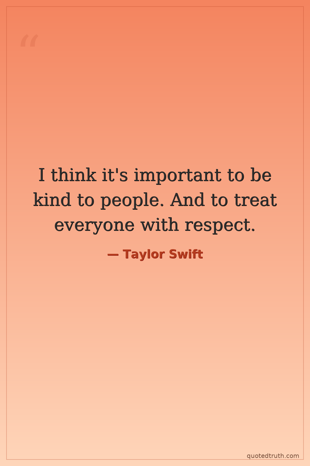 I think it's important to be kind to people. And to treat everyone with respect.