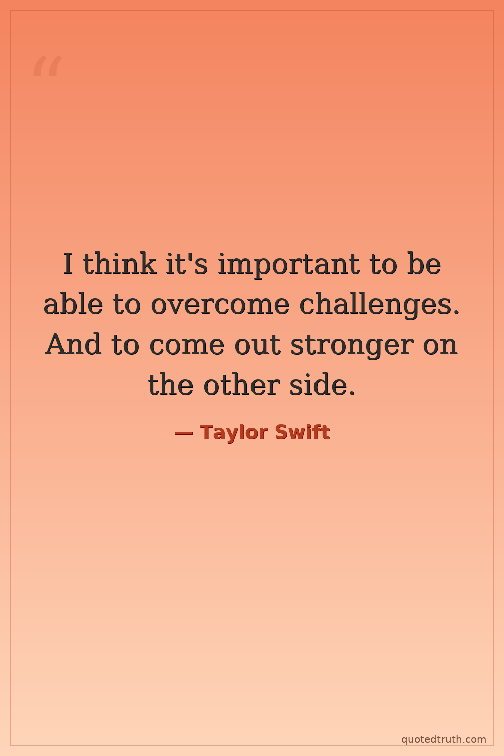 I think it's important to be able to overcome challenges. And to come out stronger on the other side.