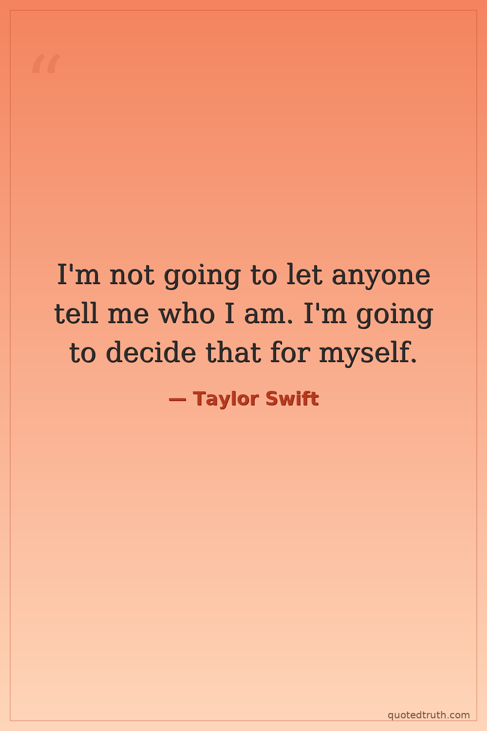 I'm not going to let anyone tell me who I am. I'm going to decide that for myself.
