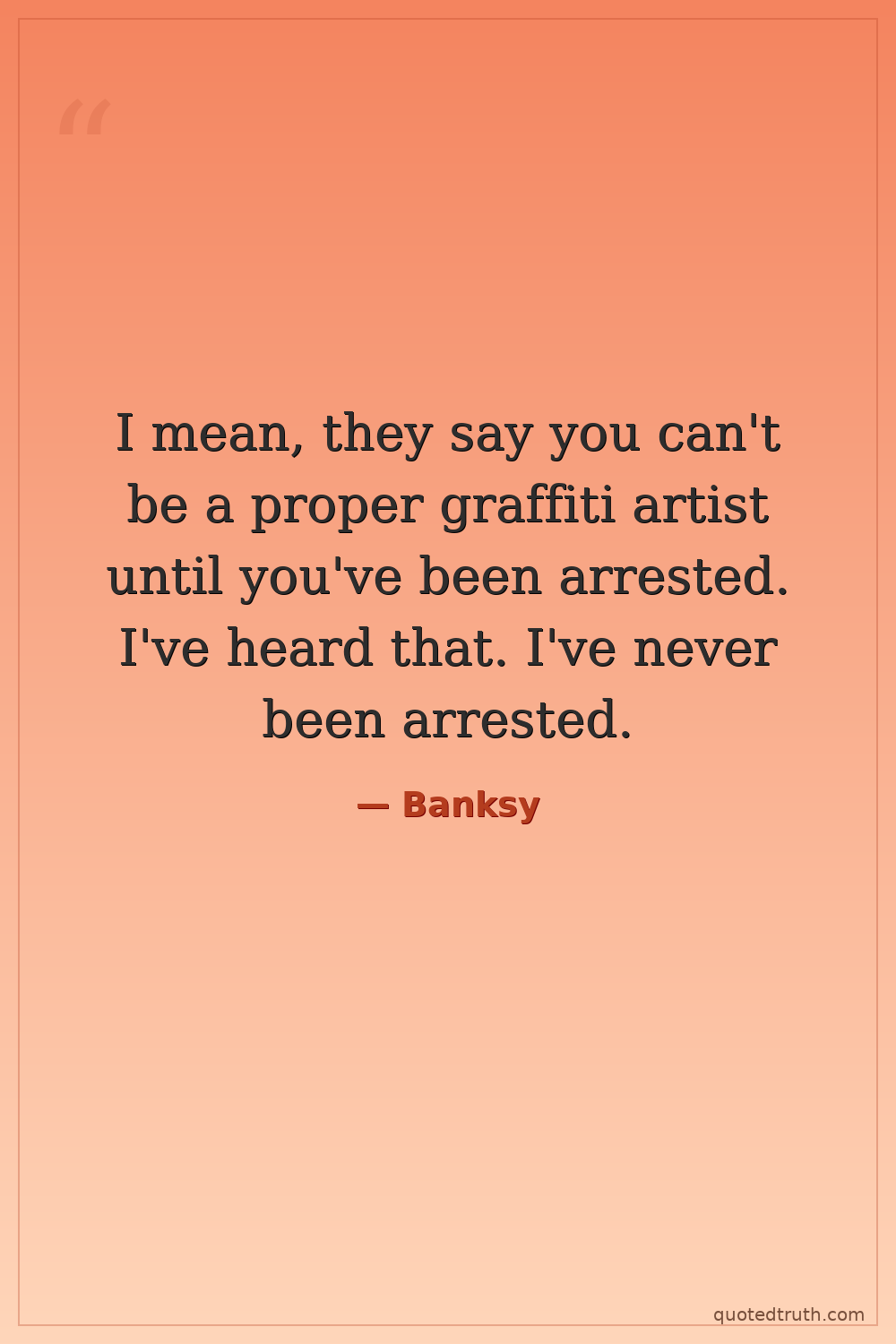 I mean, they say you can't be a proper graffiti artist until you've been arrested. I've heard that. I've never been arrested.