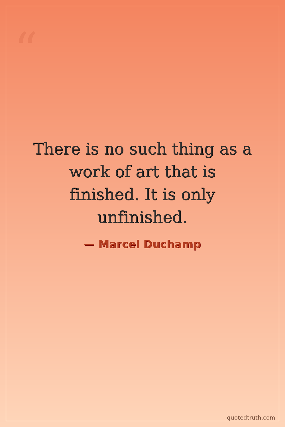 There is no such thing as a work of art that is finished. It is only unfinished.