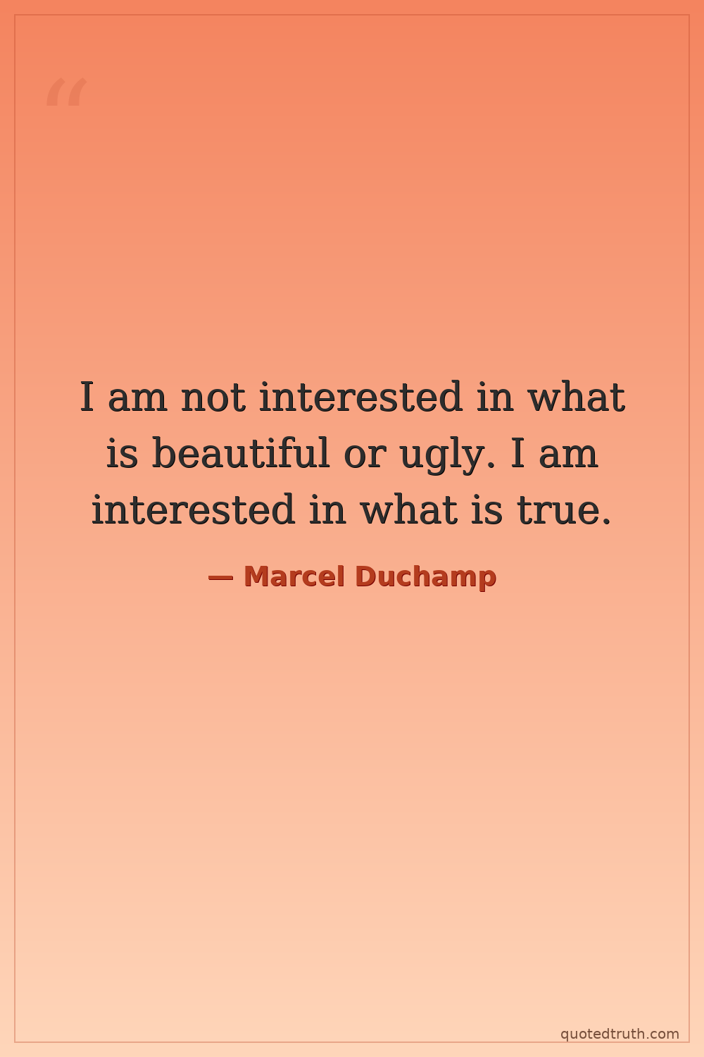 I am not interested in what is beautiful or ugly. I am interested in what is true.
