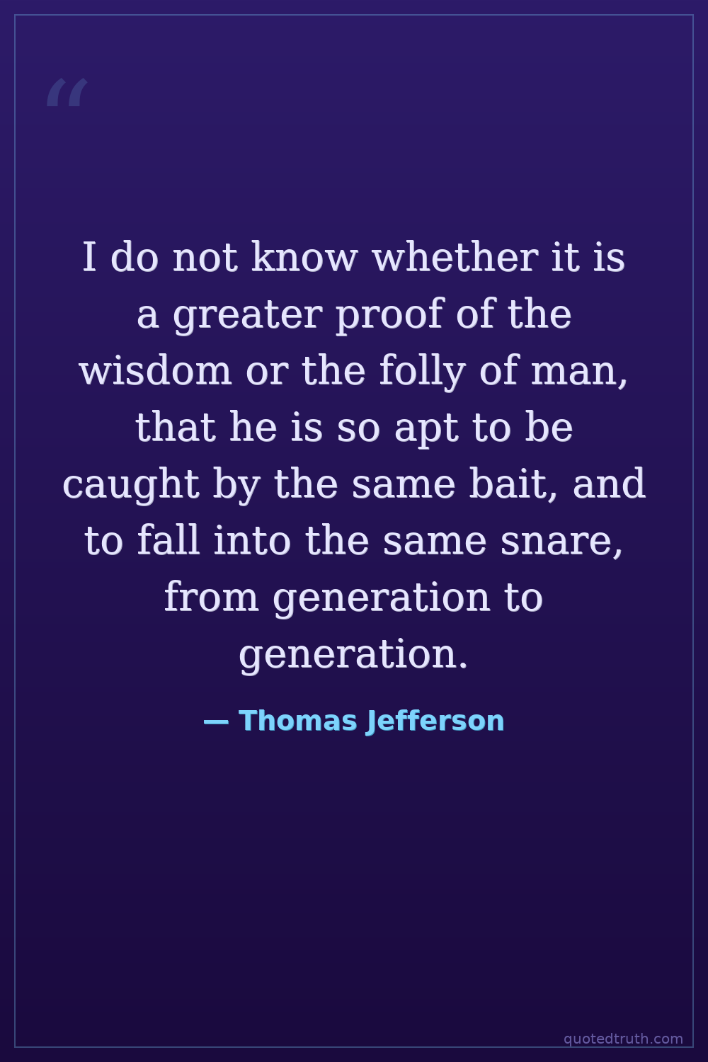 I do not know whether it is a greater proof of the wisdom or the folly of man, that he is so apt to be caught by the same bait, and to fall into the same snare, from generation to generation.