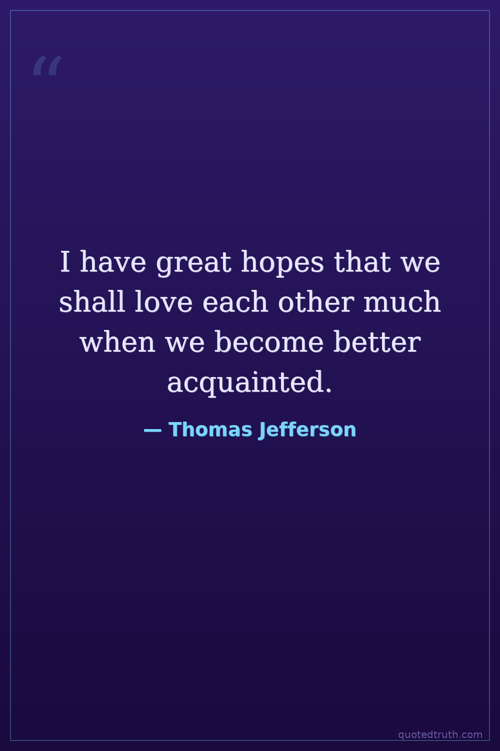 I have great hopes that we shall love each other much when we become better acquainted.