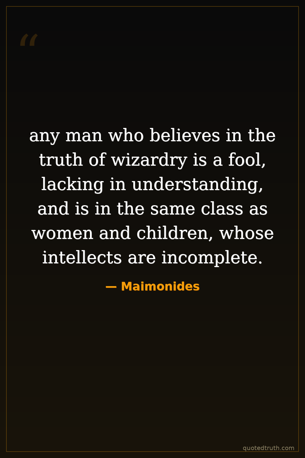 any man who believes in the truth of wizardry is a fool, lacking in understanding, and is in the same class as women and children, whose intellects are incomplete.