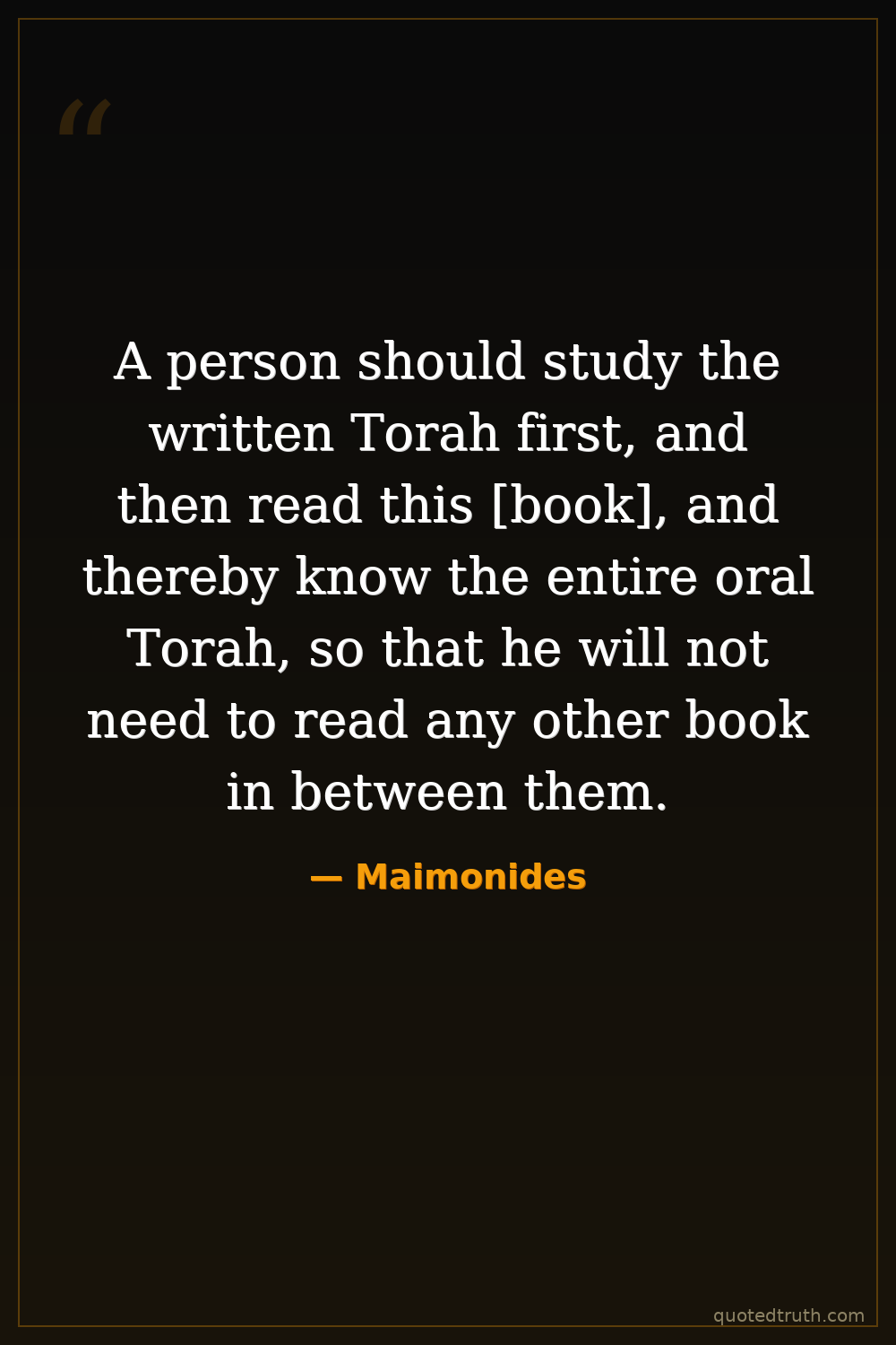 A person should study the written Torah first, and then read this [book], and thereby know the entire oral Torah, so that he will not need to read any other book in between them.