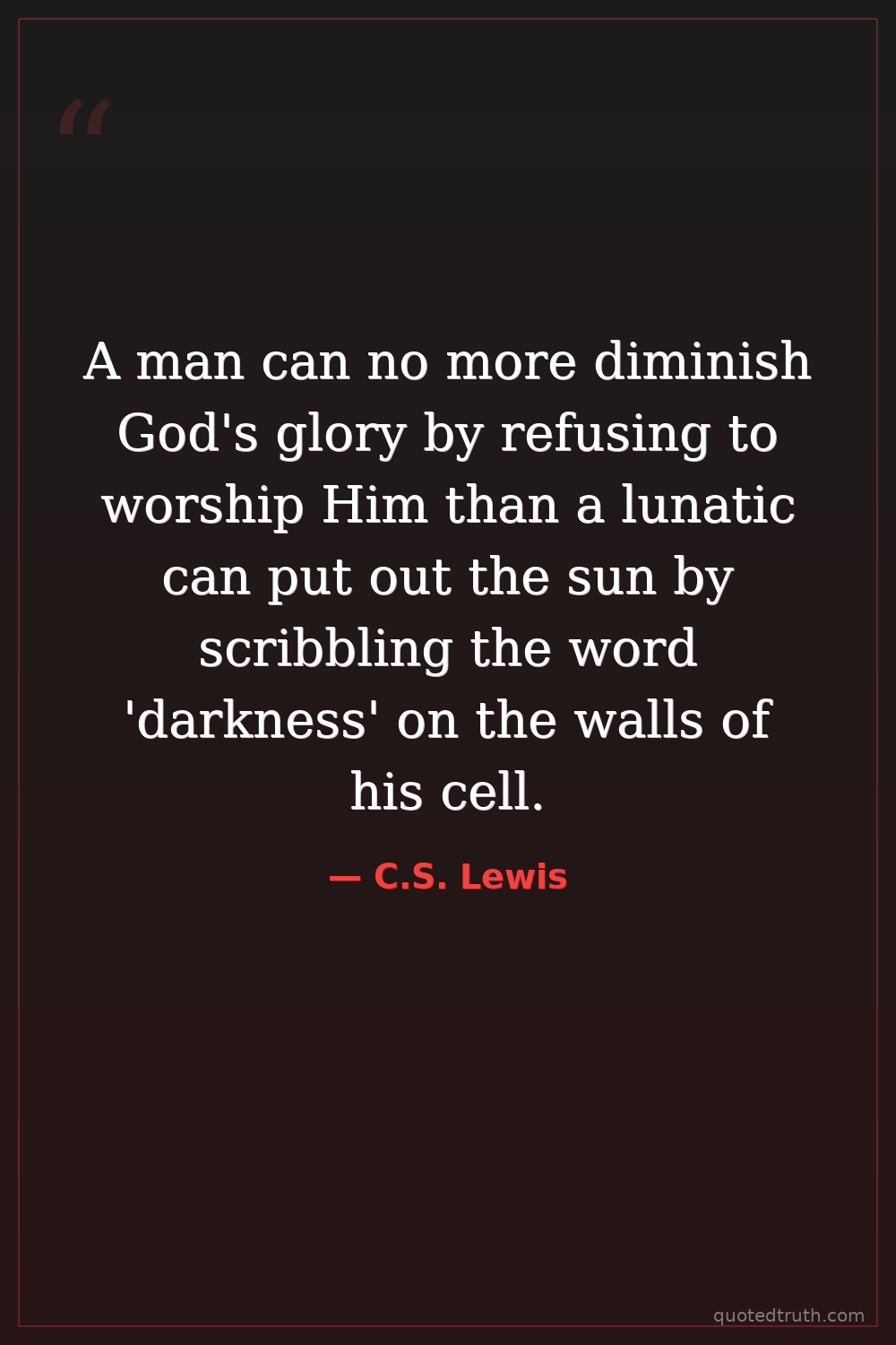 A man can no more diminish God's glory by refusing to worship Him than a lunatic can put out the sun by scribbling the word 'darkness' on the walls of his cell.
