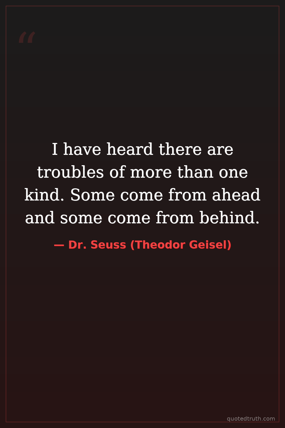 I have heard there are troubles of more than one kind. Some come from ahead and some come from behind.