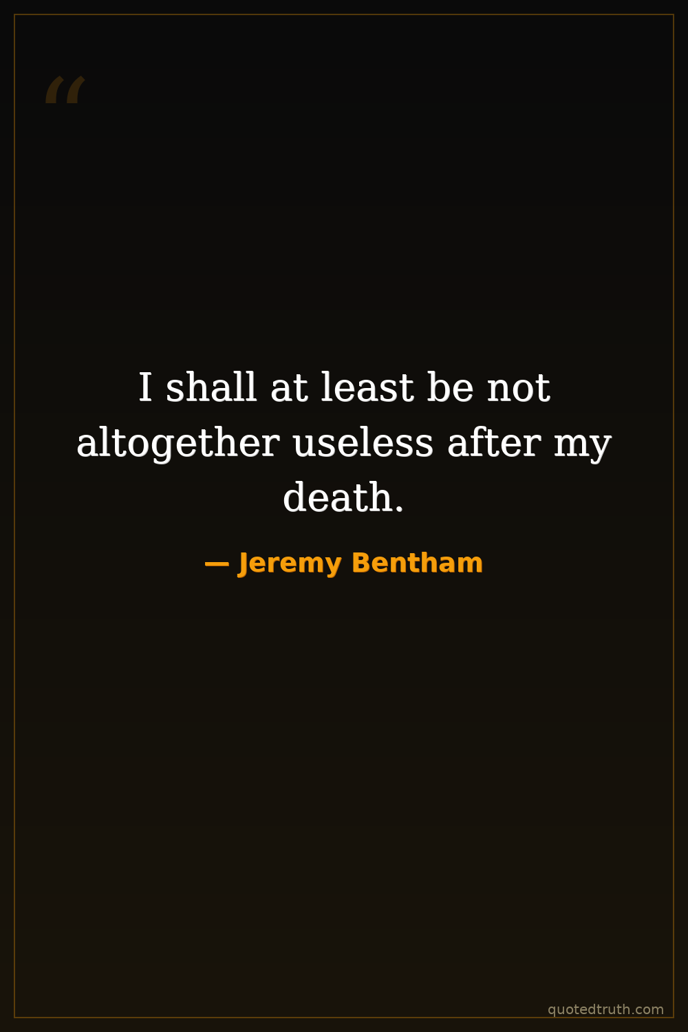 In a letter to Robert Peel, lobbying for anatomical dissection, referring to the use of his own corpse for scientific study.