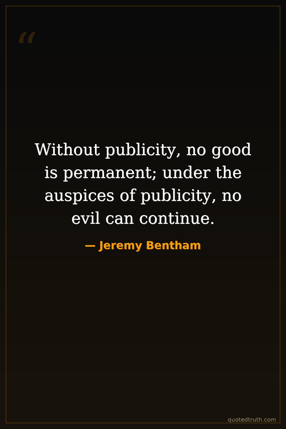 Without publicity, no good is permanent; under the auspices of publicity, no evil can continue.